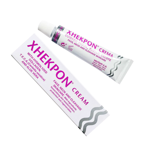 Xhekpon es una reconocida crema facial antiedad formulada con colágeno hidrolizado, centella asiática (TECA) y aloe vera, ingredientes ampliamente valorados por su efecto rejuvenecedor, hidratante y reafirmante. Esta fórmula original, elaborada en España, está diseñada especialmente para tratar y prevenir los signos del envejecimiento, mejorando la textura, firmeza y luminosidad de la piel.